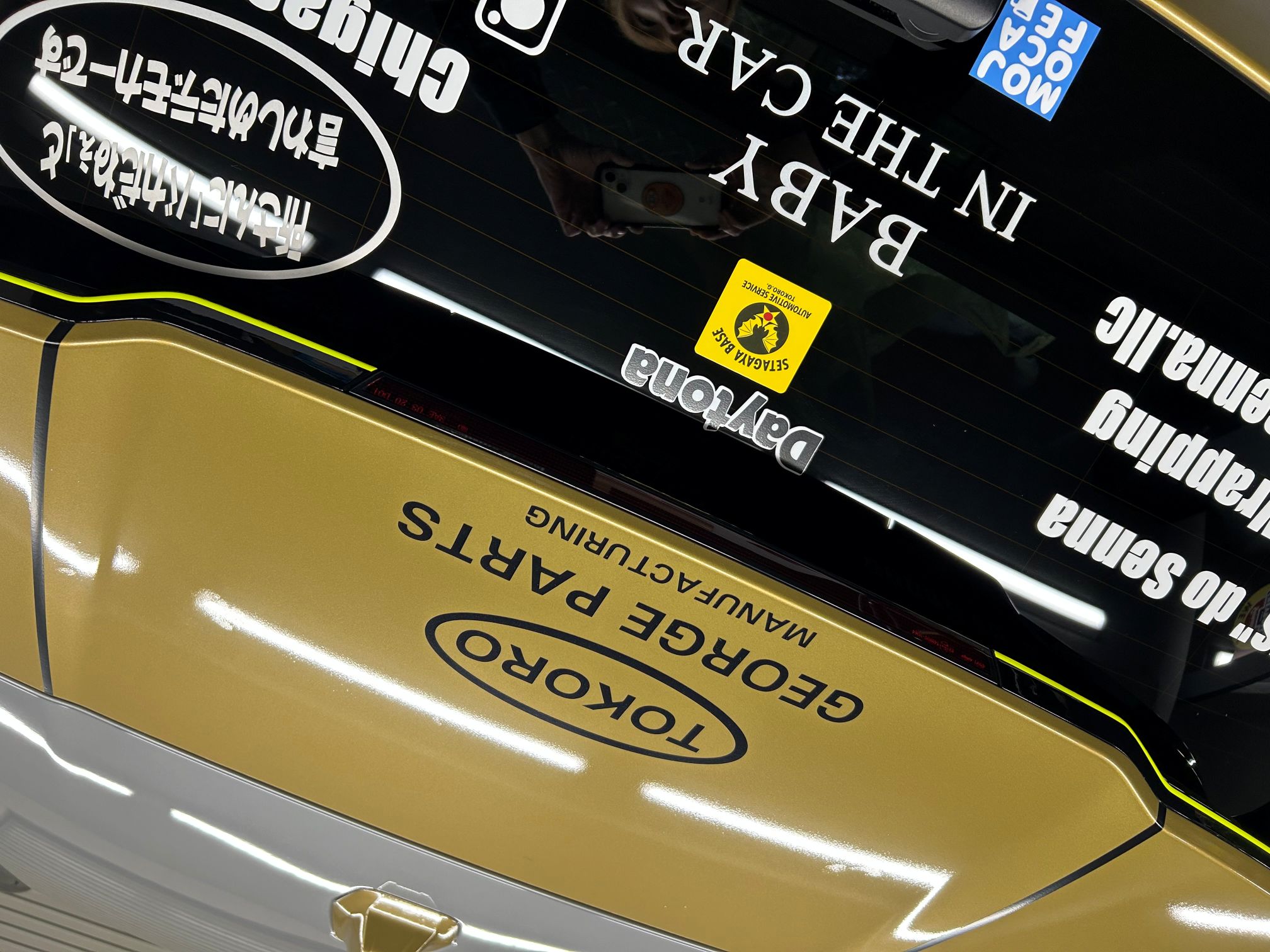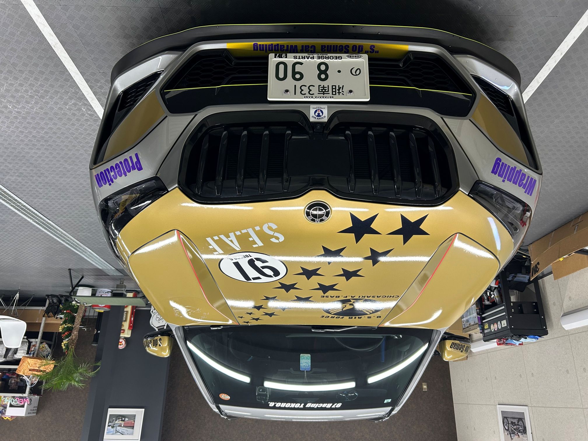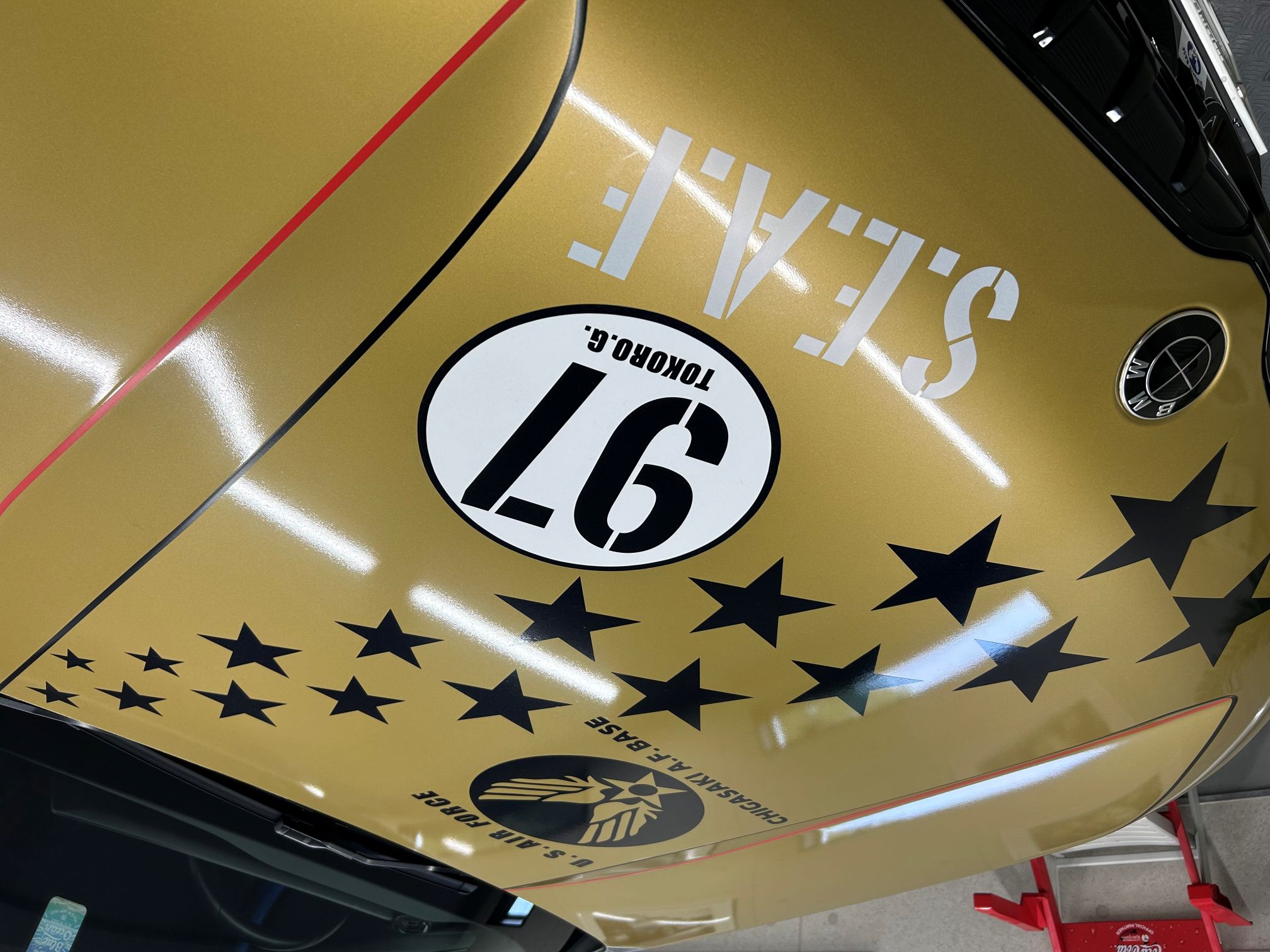 BMWの洗練されたフォルムに、ゴールド&シルバーのバイカラー、そしてU.S. AIR FORCEを彷彿とさせるミリタリーテイストを融合。細部にまで妥協なく仕上げたこのデモカーには、遊び心とプロの技術が詰まっています。ぜひ店頭で、そのディテールと圧倒的な存在感を体感してください。